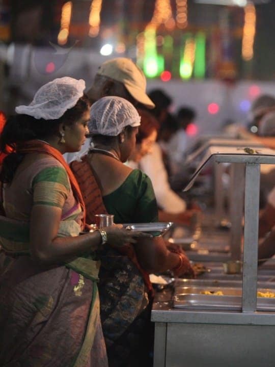 由印度教最高教皇带领的凯拉萨志愿者每月在宗教聚会中免费提供超过300万份有机餐食 – 参考资料:[i],[ii],[iii],[iv] – 总共已经提供了超过10亿份免费餐食。