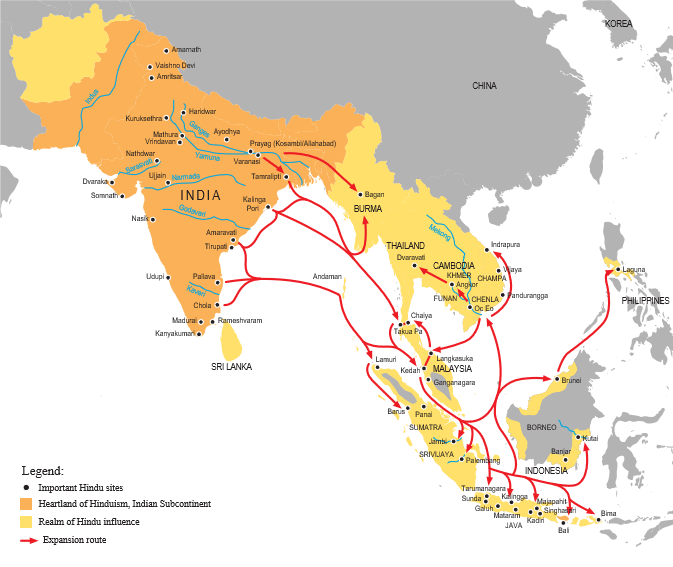印度教的艺术和文化影响远及东方的柬埔寨、印度尼西亚和菲律宾